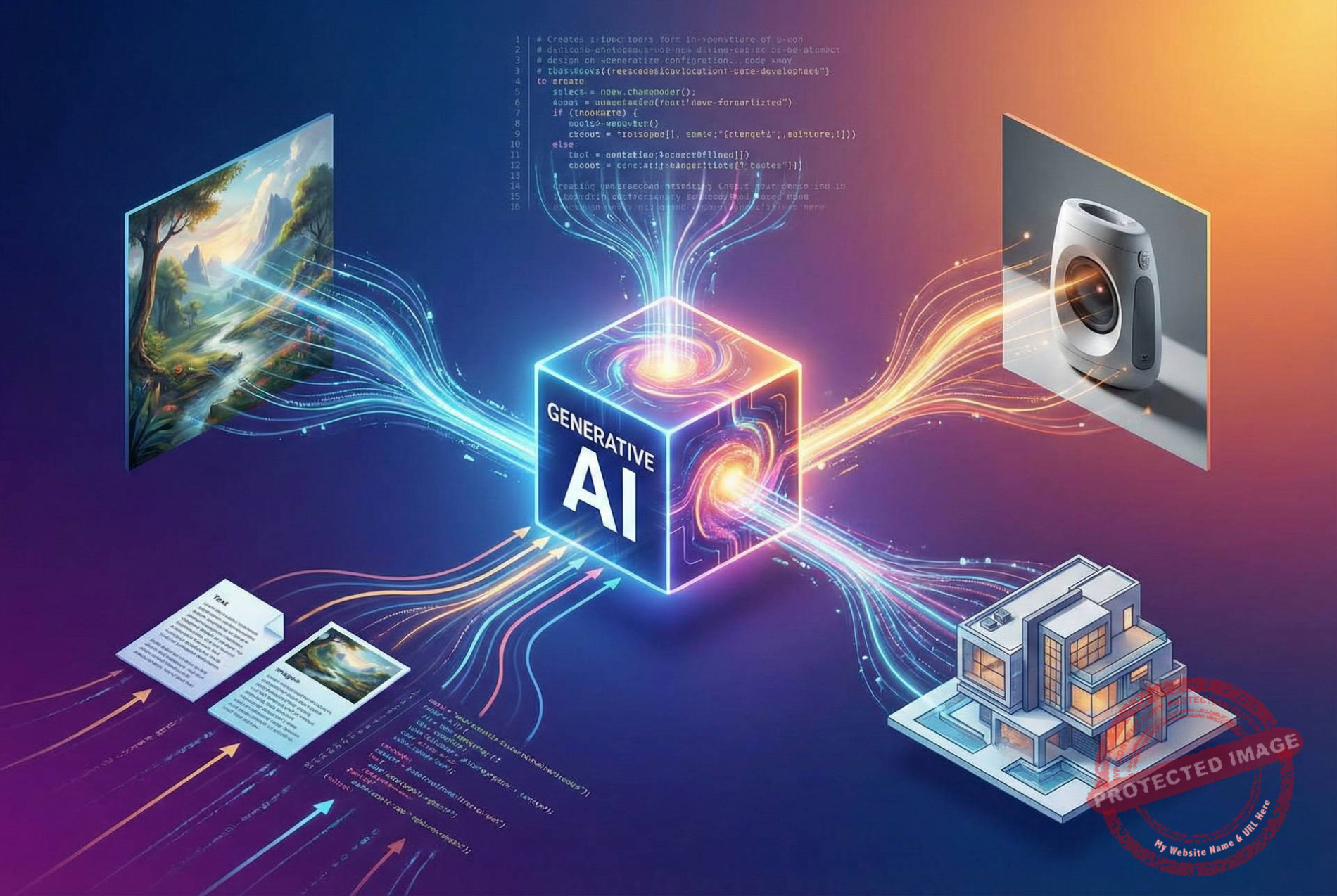 - Bản chất: Nó học các quy luật, cấu trúc của dữ liệu (văn bản, ảnh, nhạc) và dùng quy luật đó để “dệt” nên một tác phẩm hoàn toàn mới. Nó không copy-paste từ Google; nó sáng tạo từng pixel, từng từ ngữ một.